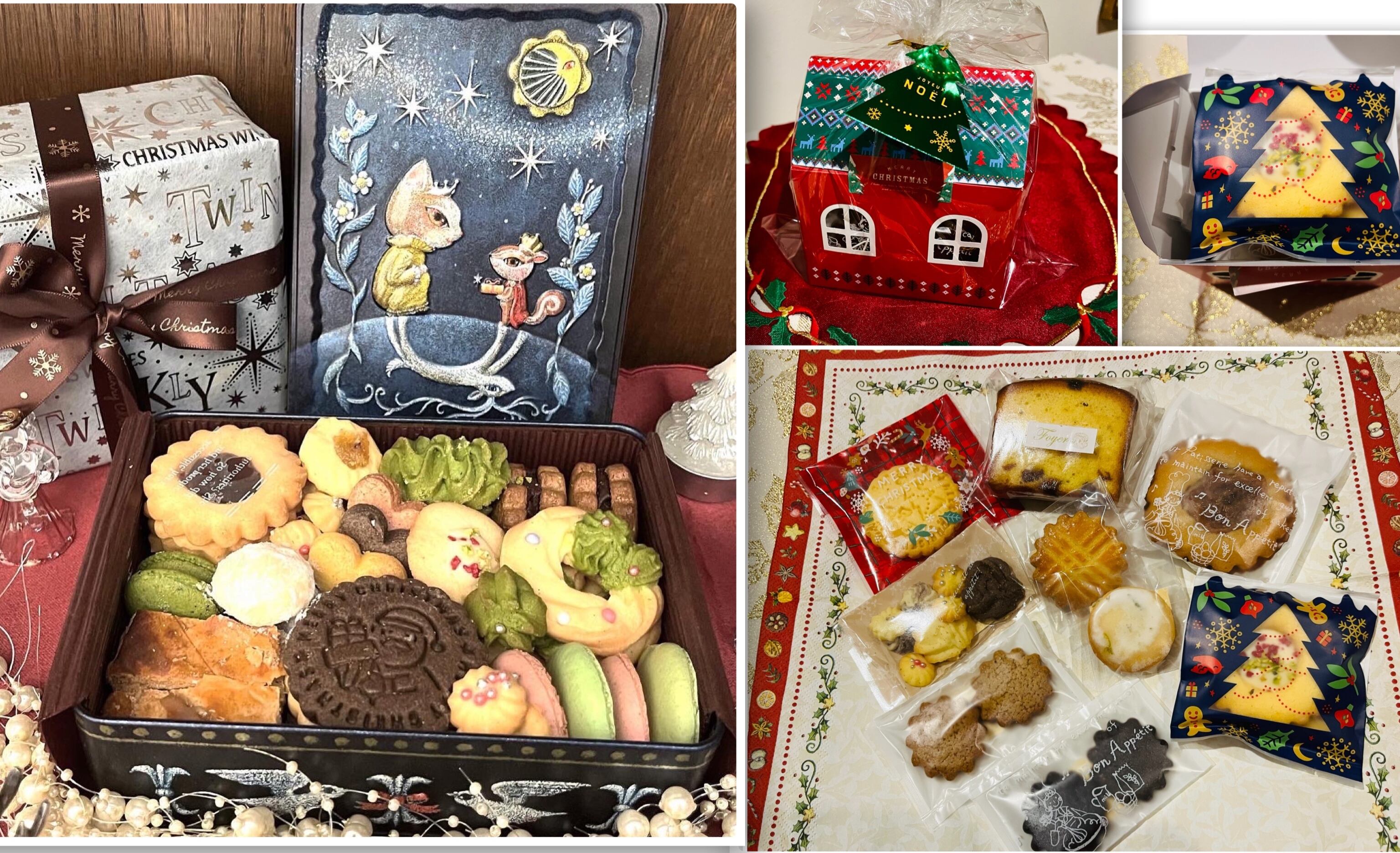 可愛いクリスマスBOXにケーキとクッキーの詰め合わせて販売させて頂きます。