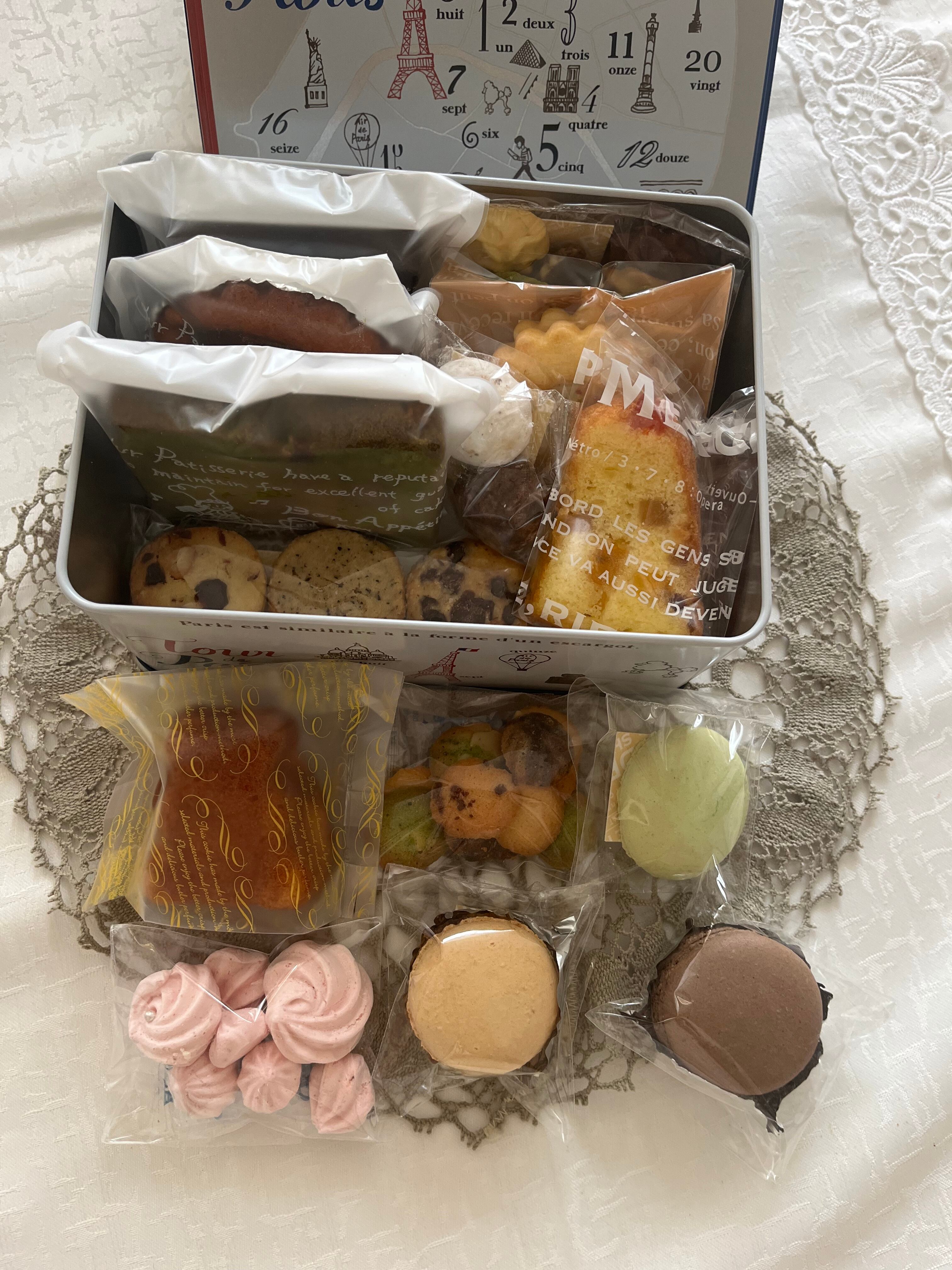 ケーキとクッキーを個包装で詰め合わせます【パリ缶】です