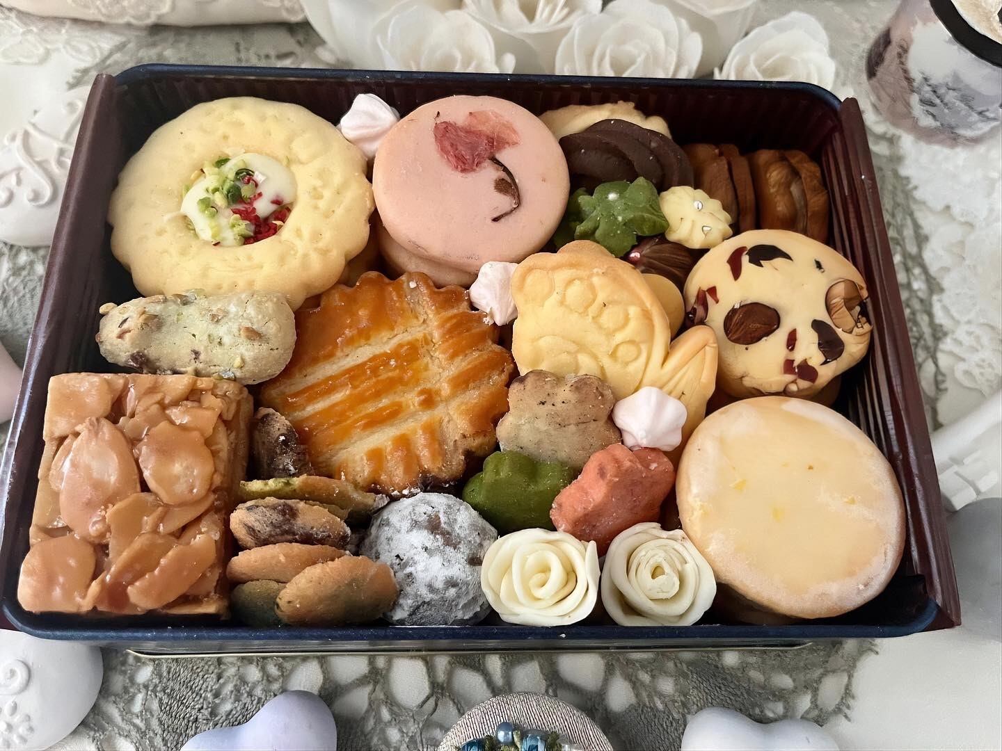 缶の中にお花が咲いたようなお花畑クッキー缶、バレンタイン缶にも増しての内容量と種類で詰め合わせました。
