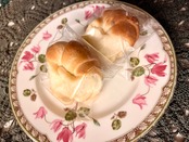 スキレットで焼くことで焼成中に生地からでたバターが底に流れバターがパン全体に染み込んだパンとなります。スキレットで焼成後にちぎって個包装にしています。