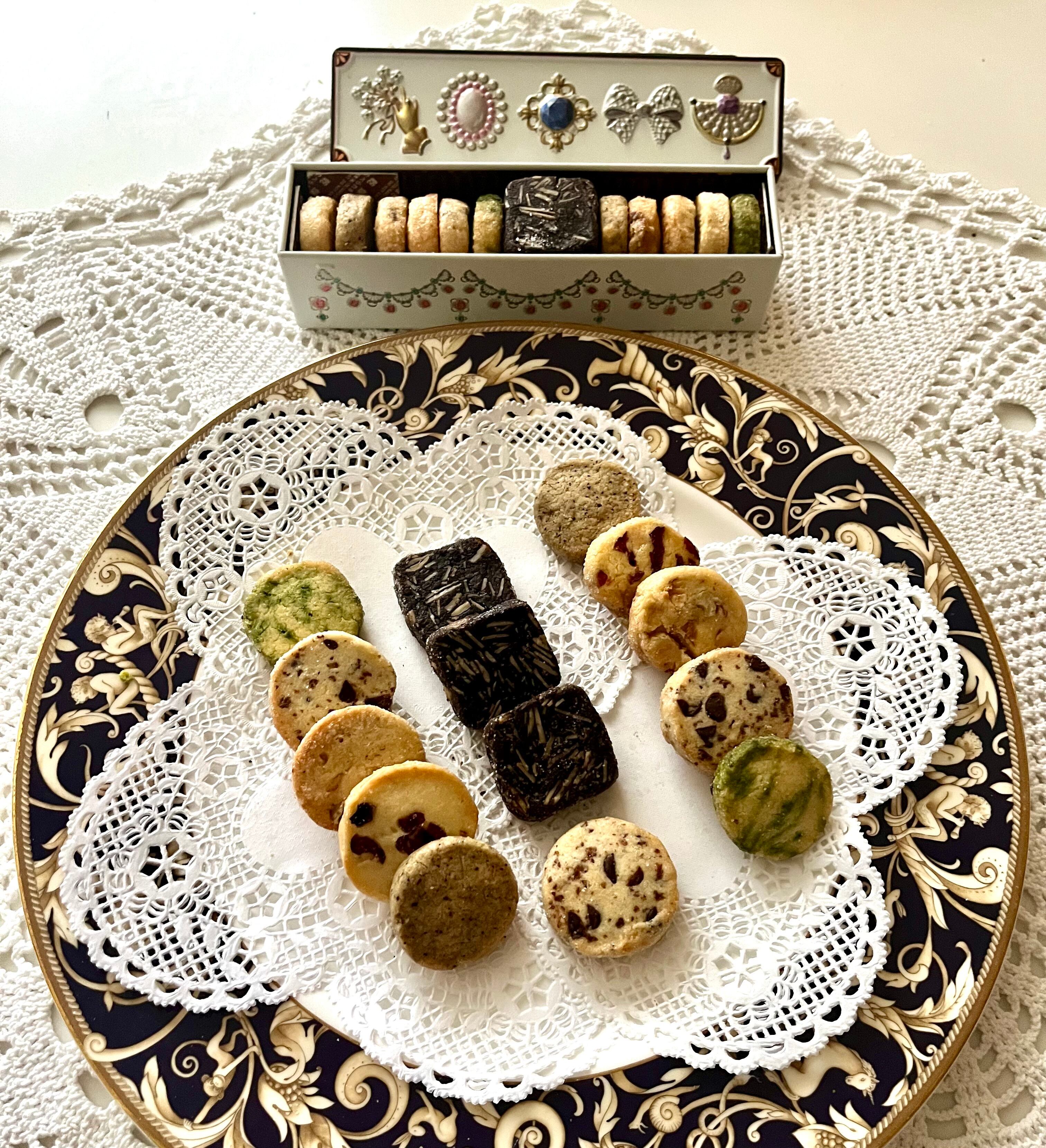 お菓子の販売の日に人気のサブレを全部で6種詰め合わせています。