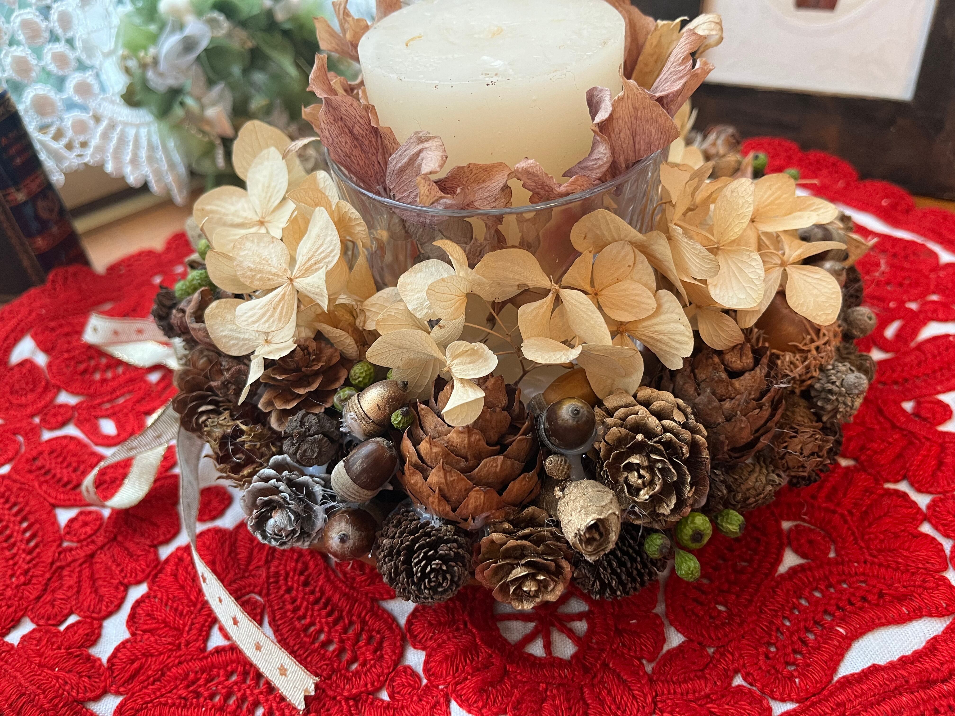 又、リースをテーブルに置き、キャンドルホルダーとしてもお使いになると